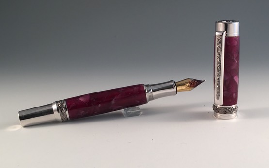 This pen is made from imported Lucite with rich color that shows the illusion of Past Europpean Royality. The Sterling Silver accent gives the pen an elegant, classic styling. Look at its rich deep rudyPurple coloring as if your looking into royal velvet. Our 21-step finishing process brings the deep illumininess shine to your pen.